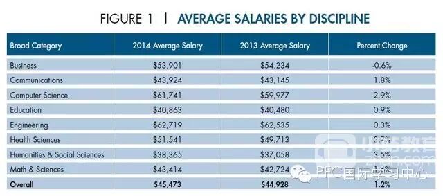全美大学与雇主协会(NACE)2014年4月发布的报告认为,过去一年美国应届生的平均起薪为45,473美元/年,比去年同期高了1.2%,但不及去年超过5%的增速。