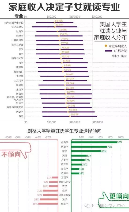 在国内,常常有人会持有这样一种观点,即“文科是有钱人读的专业”,家庭状况不好的的学生最好是选择就业稳定的理工科,然而不仅国内如此,在国外也同样得到印证。